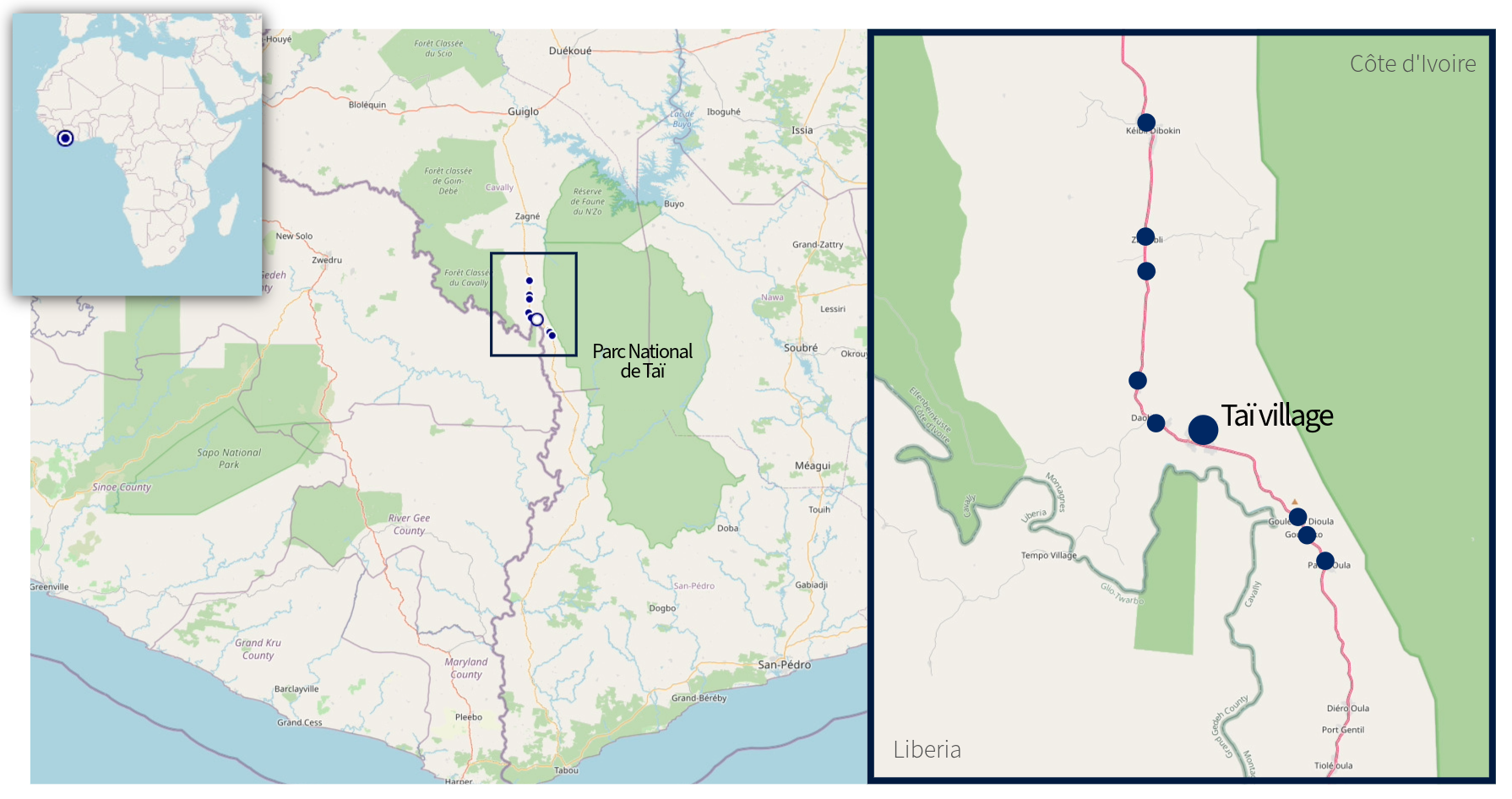 Das HIOH und seine Partner starten nun ihre erste Kohortenstudie im und um den Taï-Nationalpark in Côte d’Ivoire als Teil der One Health Exploratories. Diese langfristige Initiative wird von der HIOH-Arbeitsgruppe „One Health Surveillance” koordiniert und zielt darauf ab, die Zusammenhänge zwischen der Gesundheit von Menschen, Tieren und Umwelt besser zu verstehen, um mögliche Spillover-Ereignisse frühzeitig zu erkennen und die Vorsorge für zukünftige Pandemien zu stärken.